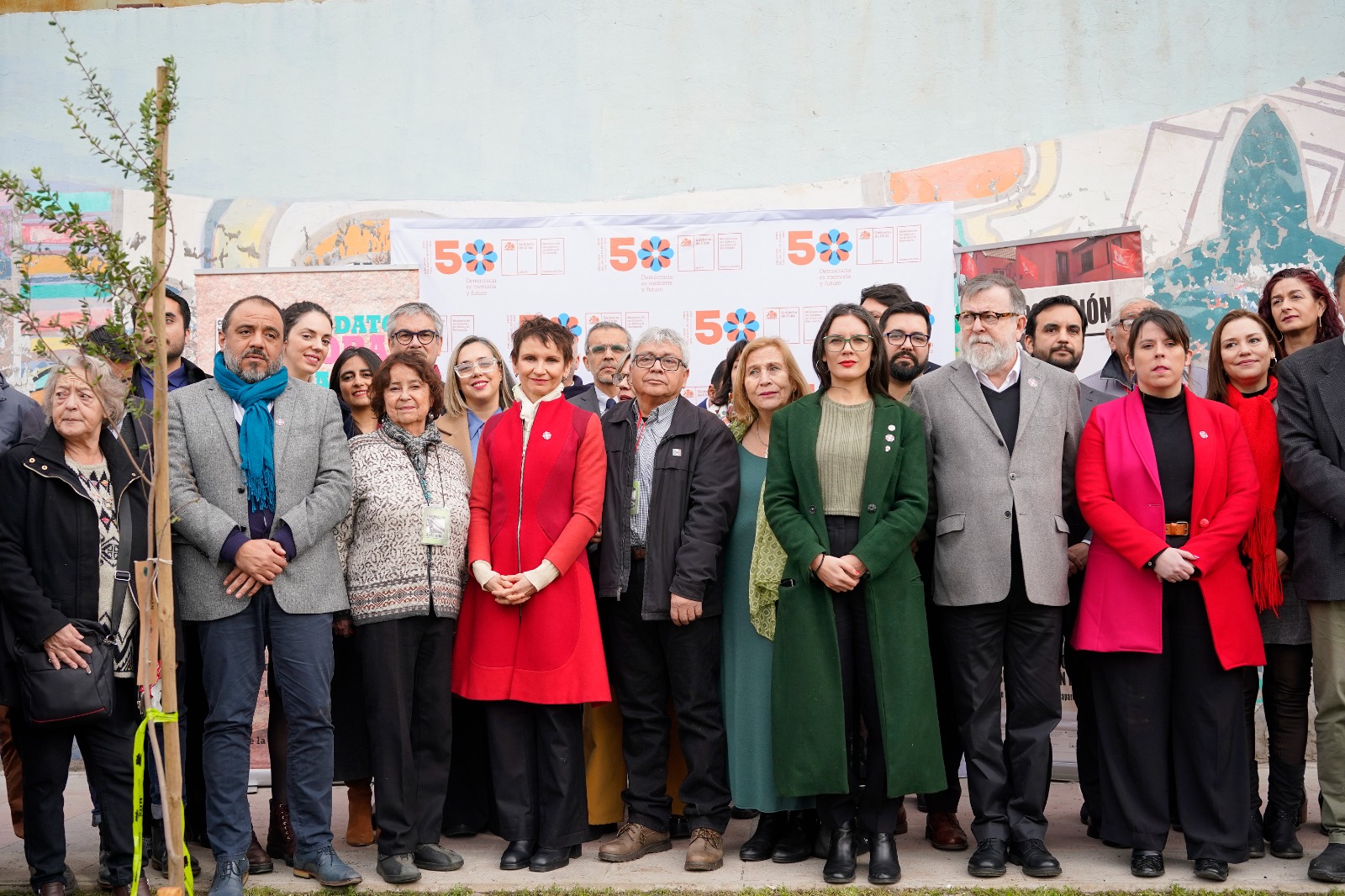 La vicepresidenta de la República, Carolina Tohá, destacó que “estos árboles son nuestros votos por la democracia y por la vida. Votos que se deben renovar todos los días en democracia, porque el monstruo que llevamos dentro está siempre ahí y necesitamos domarlo y mantenerlo a raya. Estos árboles serán nuestro recordatorio vivo del compromiso que hacemos cuando nosotros decimos nunca más, y, especialmente cuando decimos que quisiéramos convertir ese nunca más en una consigna nacional que vaya más allá de nosotros. Que sea de toda la sociedad chilena, que convoque a todos los sectores, sin exclusión, y a todas las personas”.