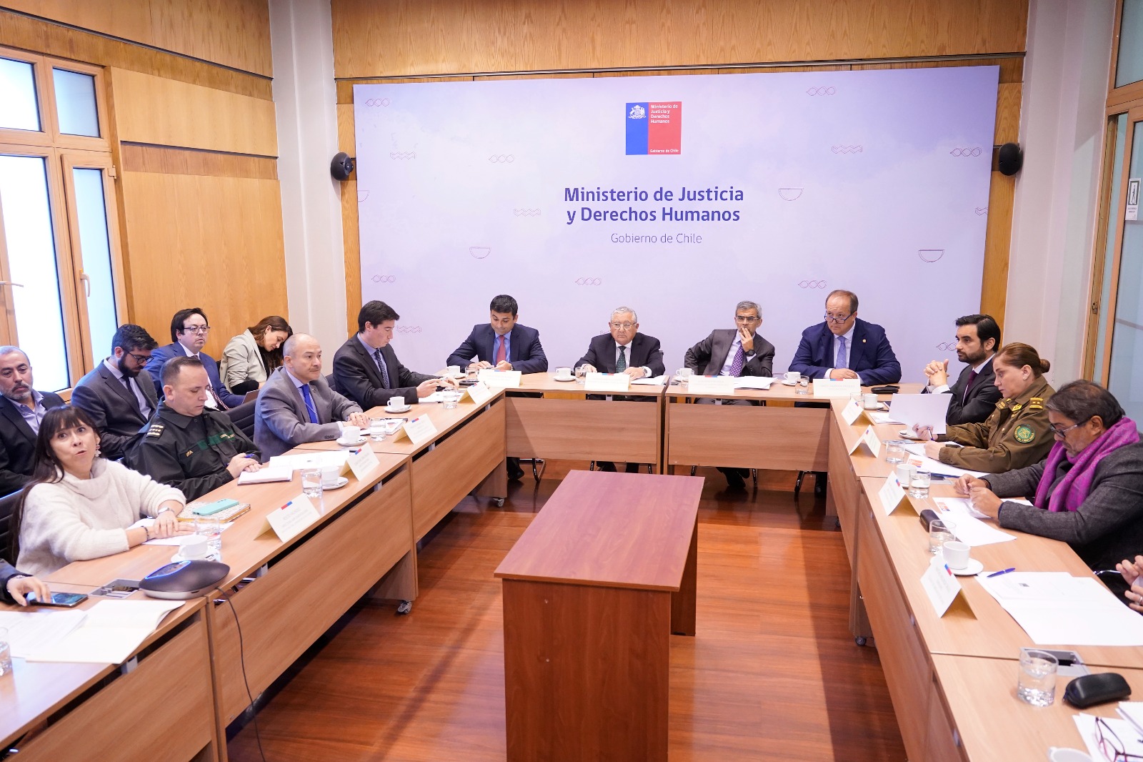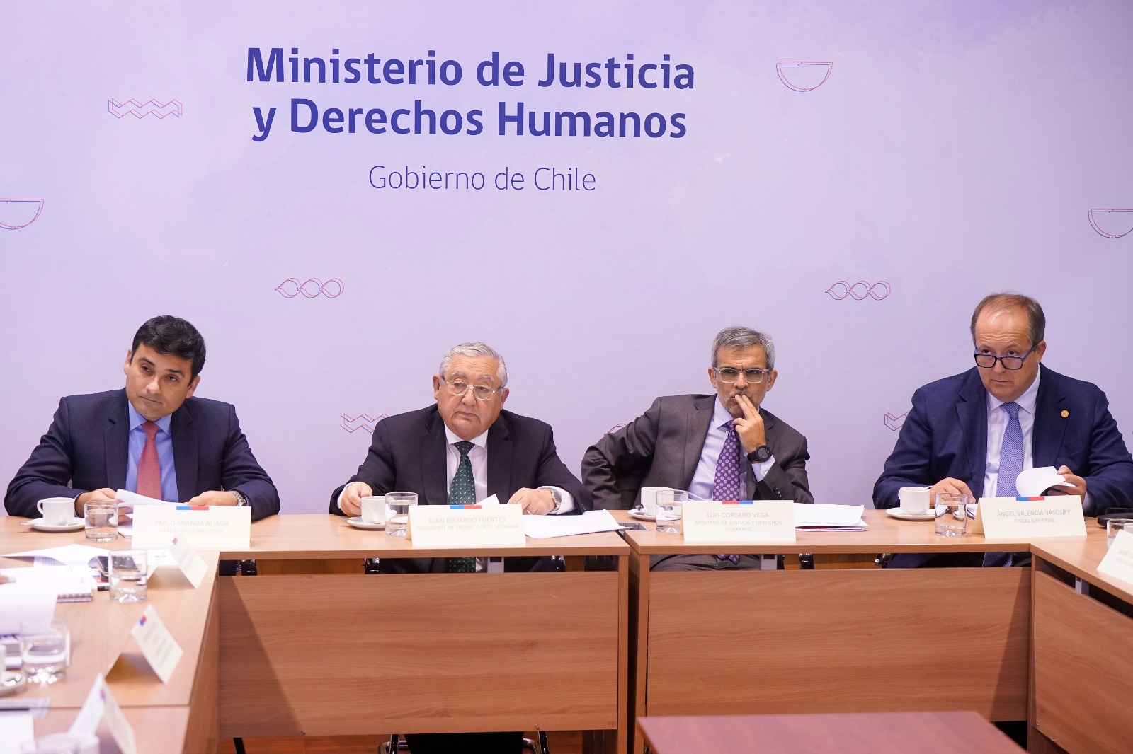 El ministro de Justicia y Derechos Humanos, Luis Cordero Vega, junto al subsecretario de Justicia, Jaime Gajardo y el subsecretario de Derechos Humanos, Xavier Altamirano, encabezó este mediodía una nueva sesión de la Comisión Nacional de Coordinación del Sistema de Justicia.