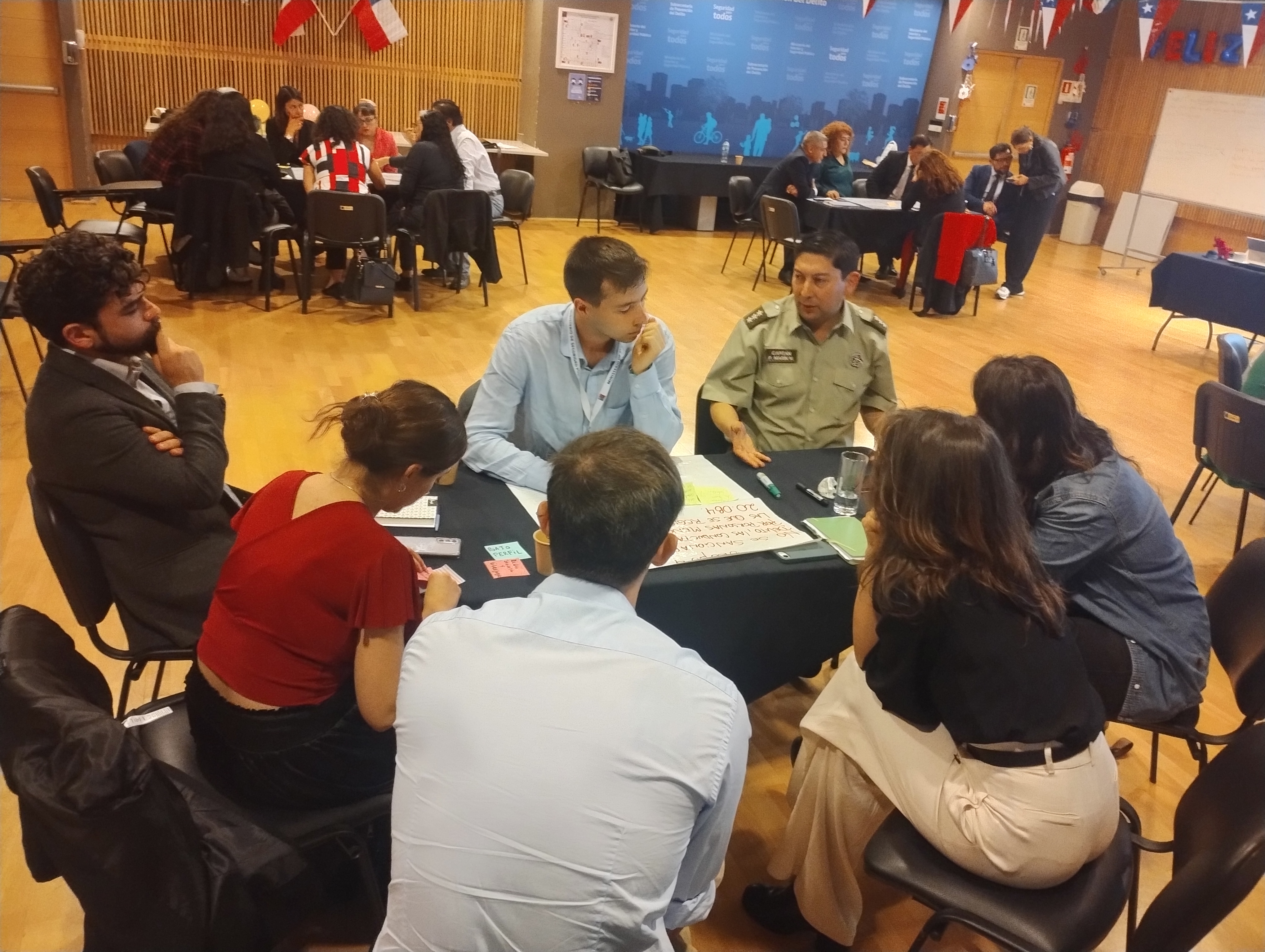 El taller principal abordó conceptos clave sobre el reclutamiento de NNA, desafíos en investigación criminal, y enfoques restaurativos en la prevención del delito. Participaron profesionales de instituciones como el Ministerio Público, Poder Judicial, Carabineros, PDI, Gendarmería, Subsecretaría de Prevención del Delito, Servicio Nacional de Reinserción Social Juvenil, Defensoría de la Niñez, UNICEF, y centros de investigación como Paz Ciudadana y el Centro de Estudios Justicia y Sociedad de la UC.