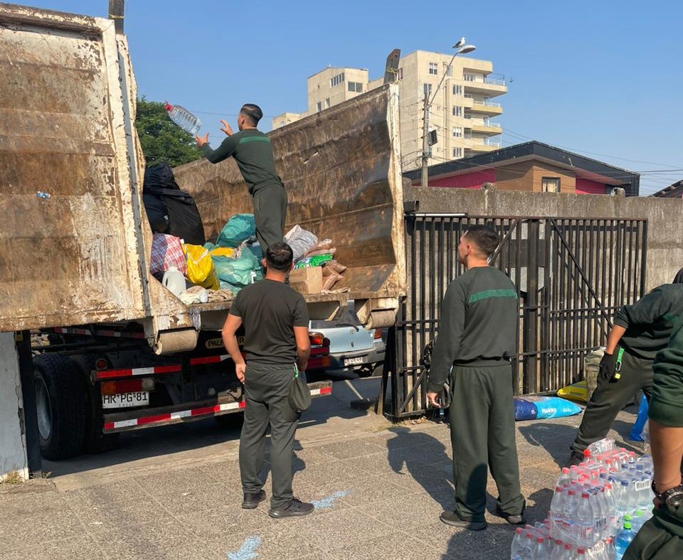 Por su parte, Gendarmería de Chile ha desplegado equipos para contribuir al despeje de sectores afectados y al apoyo logístico en beneficio de las comunidades. Funcionarios y usuarios del Centro de Educación y Trabajo (CET) Punta de Parra, junto a vecinas y vecinos, han realizado labores de limpieza y retiro de escombros en Tomé, mientras que gendarmes alumnos de la Escuela de Formación Penitenciaria se encuentran colaborando en tareas de ayuda y seguridad en la comuna de Penco, bajo la supervisión del Comando de Incidentes local. La próxima semana hará lo propio un contingente de aspirantes a oficiales de la Escuela Institucional.