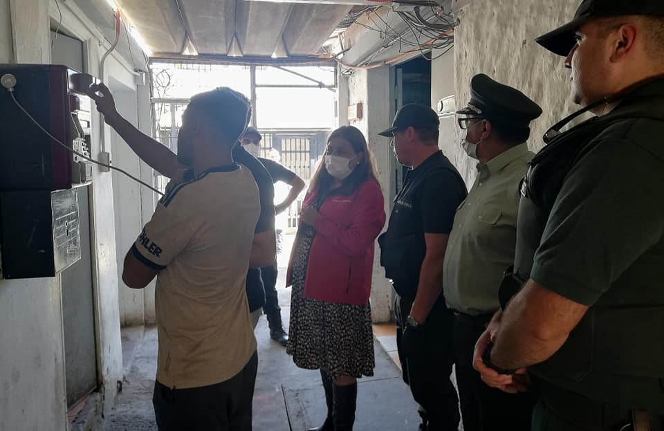 Con la finalidad de supervisar la correcta implementación de las disposiciones establecidas por el Plan Justicia Te Cuida en el Centro de Cumplimiento Penitenciario de Copiapó, la Seremi de Justicia y Derechos Humanos, Margarita Contreras visitó el recinto, acompañada por el Director Regional de Gendarmería, Coronel Víctor Vera. En el recorrido, la autoridad supervisó el control sanitario de acceso, el actual funcionamiento del penal y los espacios que se están habilitando para el eventual aislamiento de la población penitenciaria, ante el surgimiento de sospechas o contagio de Covid-19.