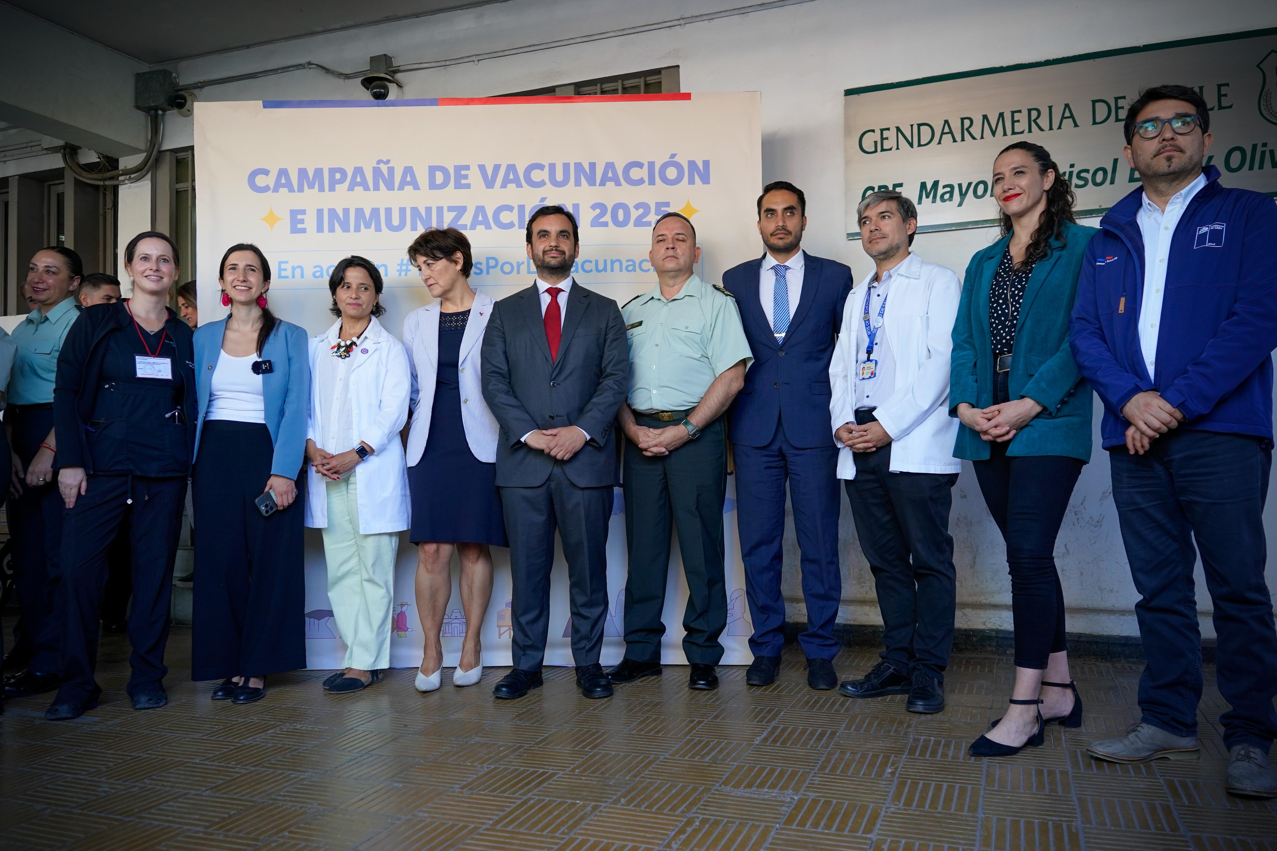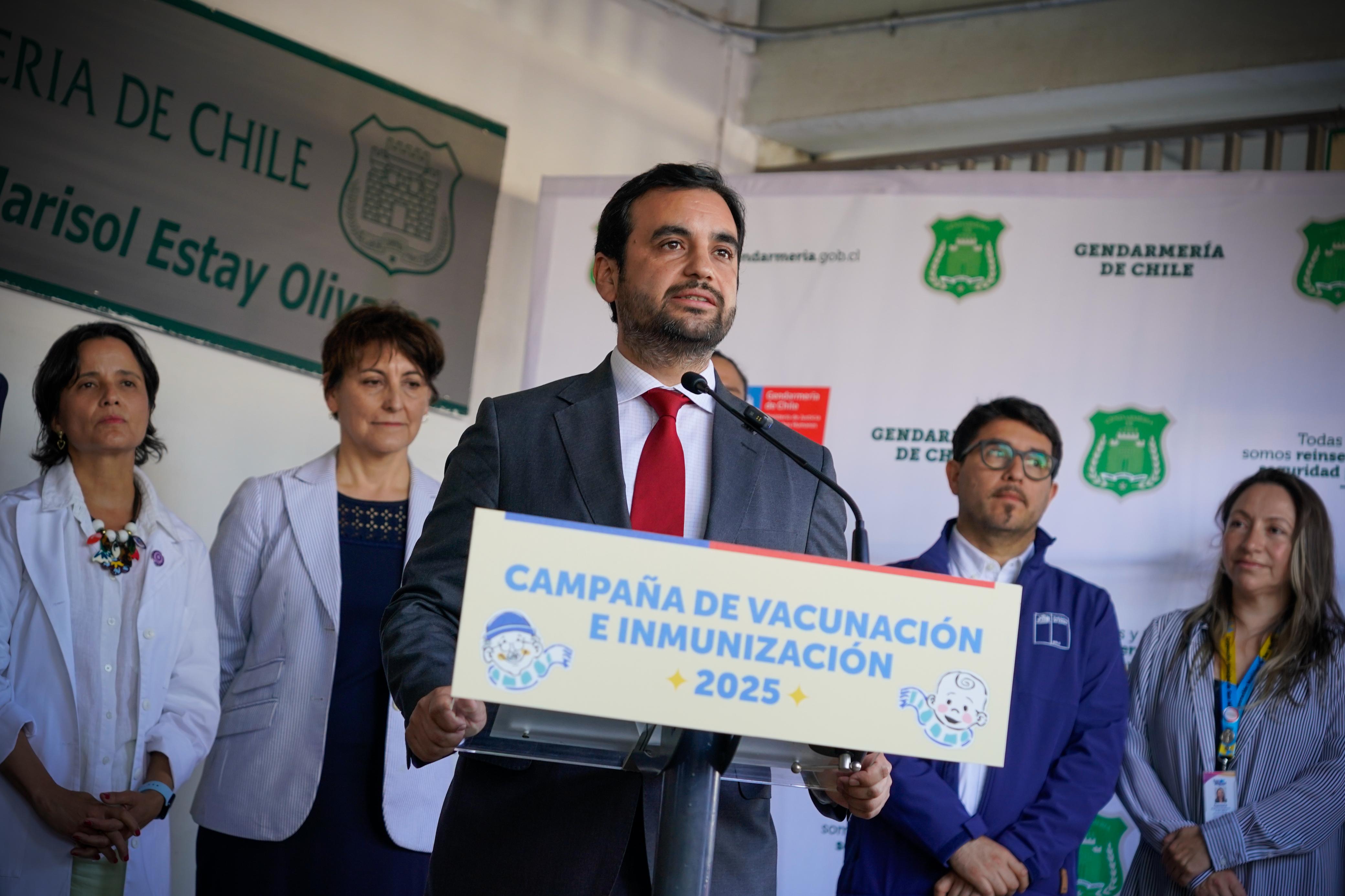 El Ministro de Justicia y Derechos Humanos, Jaime Gajardo, junto a la Ministra de Salud, Ximena Aguilera, y la Presidenta del Colegio Médico, Anamaría Arriagada, encabezaron este jueves un operativo de salud en el Centro Penitenciario Femenino de San Miguel, dirigido a mujeres privadas de libertad, dando así inicio a la Campaña de Vacunación e Inmunización 2025 en unidades penales, que además consideró atenciones médicas preventivas.