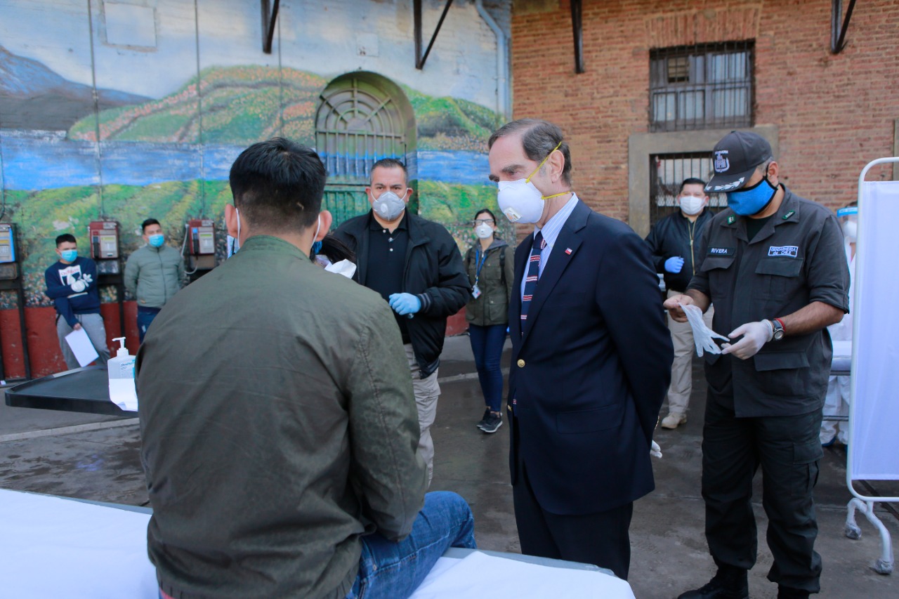 “Estamos realizando un fuerte trabajo intersectorial en el sector público, que incluye también la colaboración con universidades y con el sector privado, para entregar permanentemente nuevas medidas que permitan contener el avance del Covid-19 en nuestros recintos penales. Hoy realizamos este operativo de salud en el corazón de la Ex Penitenciaria, con el apoyo de las dos casas de estudio más importantes del país. Estamos trabajando arduamente para buscar soluciones y no descansaremos hasta controlar la situación”, indicó el Ministro de Justicia y Derechos Humanos, Hernán Larraín.