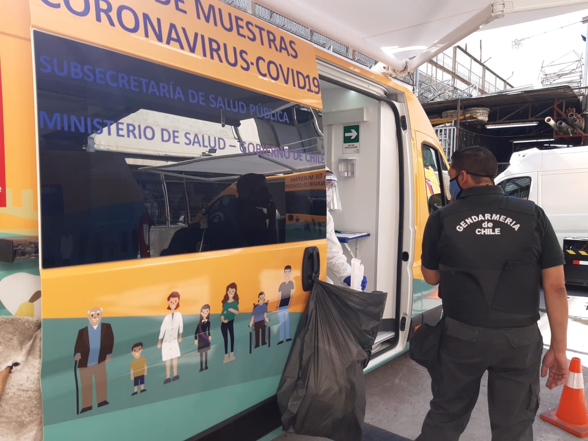 Cuatro móviles de la Seremía de Salud Metropolitana llegaron esta mañana hasta la cárcel de Puente Alto, con el objetivo de tomar 300 test adicionales para detectar el Coronavirus.