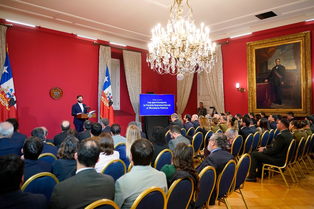 El martes 16 de septiembre, el Presidente de la República, Gabriel Boric Font, encabezó la promulgación de la Ley que incorpora la Fiscalía Supraterritorial al Ministerio Público junto a las ministras y ministros del Interior, Álvaro Elizalde; Seguridad Pública, Luis Cordero; Justicia y Derechos Humanos, Jaime Gajardo; y Hacienda (s), Heidi Berner; el fiscal Nacional, Ángel Valencia; el general director de Carabineros, Marcelo Araya; y el director general de la PDI, Eduardo Cerna, y otras autoridades de Gobierno y de Estado.