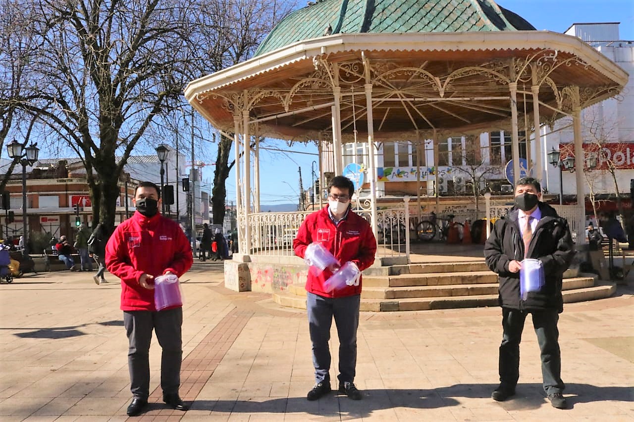 La actividad contó con la participación del gobernador de Valdivia, quien repartió los elementos de protección personal en comerciantes de la ciudad.