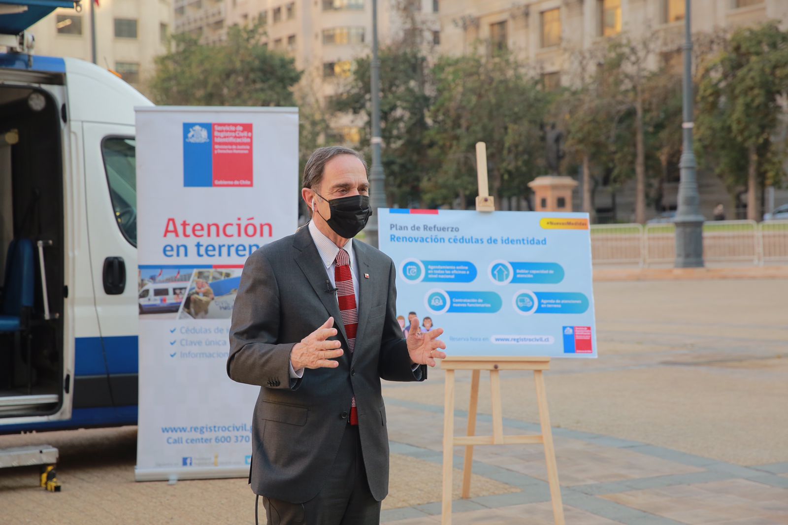 A primera hora de hoy, el Ministro de Justicia y Derechos Humanos, Hernán Larraín, junto al Director Nacional del Registro Civil, Sergio Mierzejewski, anunciaron un plan de refuerzo para la renovación de cédulas de identidad, que comenzará a operar el miércoles 17 de noviembre, ante el próximo vencimiento de más de dos millones de documentos.