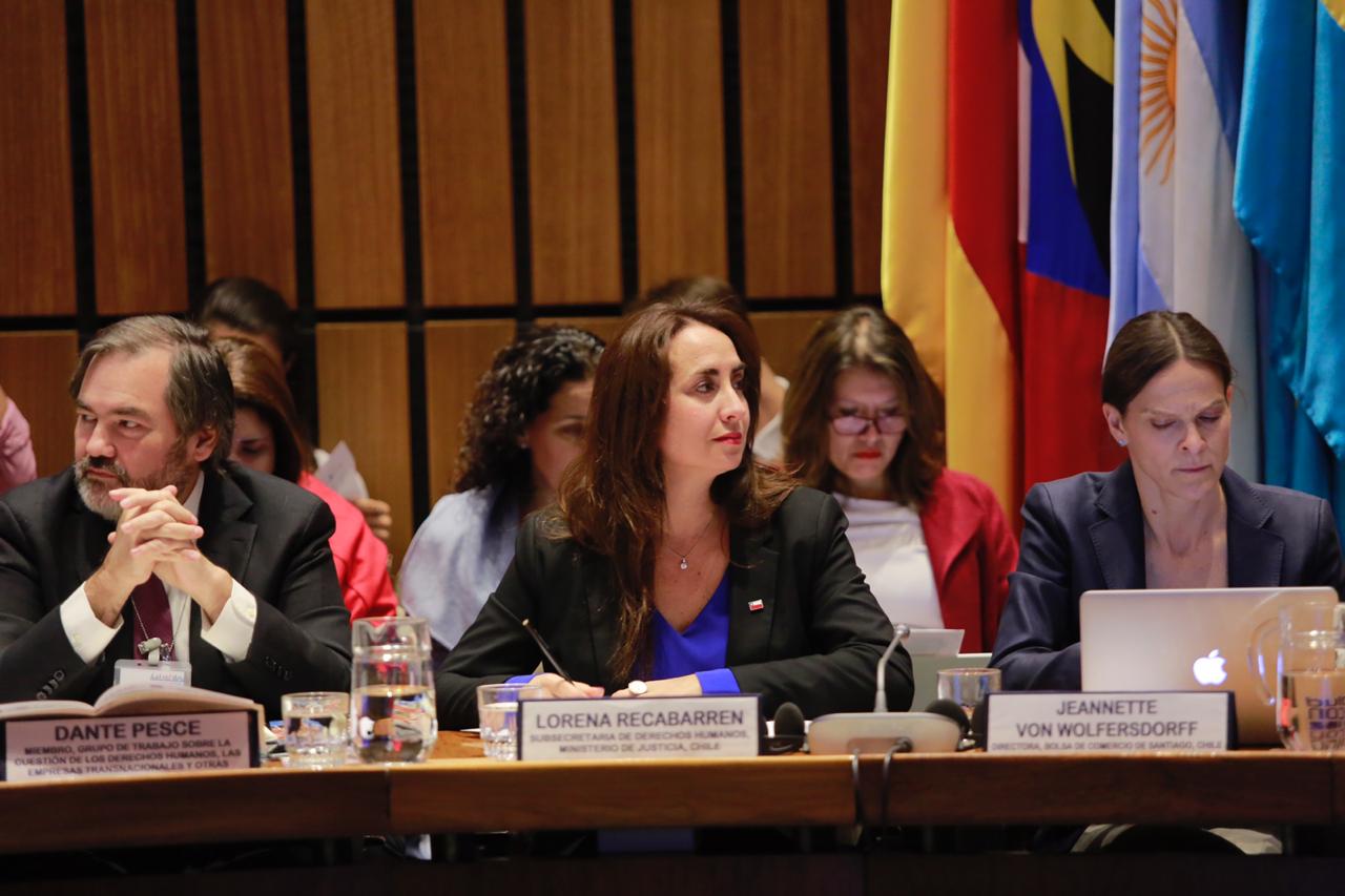 Por otra parte, la Subsecretaria Recabarren participó como expositora en el panel “Planes de Acción Nacionales en materia de empresas y DD.HH. y coherencia política” y en la sesión paralela “El papel de las empresas abordando el cambio climático y los DD.HH: Traduciendo las agendas globales en medias prácticas”, organizados por ACNUDH y la OCDE respectivamente.