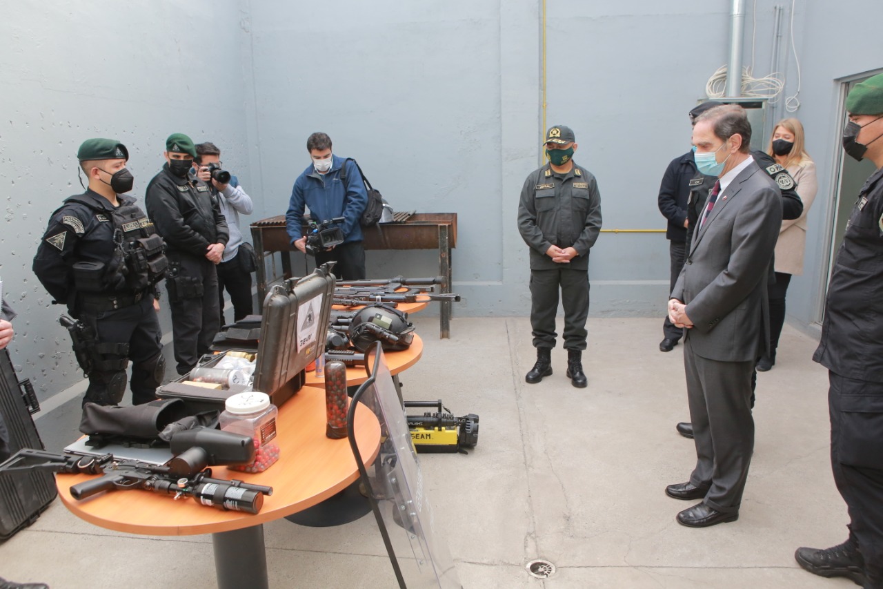 El Ministro de Justicia y Derechos Humanos, Hernán Larraín, y el Director Nacional de Gendarmería, Christian Alveal, inauguraron este jueves, las dependencias que albergarán al nuevo Centro de Entrenamiento y Cuartel de las Secciones Especiales de la Institución, ubicado en la comuna de Santiago.