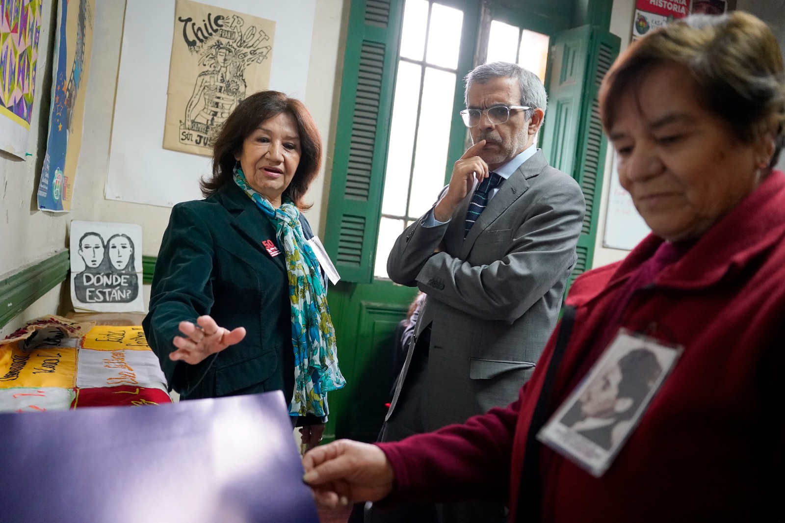 El Ministro Luis Cordero visitó el taller “Hilvanando Memorias”, instancia donde compartió con familiares de víctimas de la desaparición forzada y defensores de derechos humanos. El taller tiene por objetivo tejen los nombres de los 1.469 detenidos y detenidas desaparecidadas durante la dictadura civil militar chilena, además de ser una instancia de encuentro y memoria.