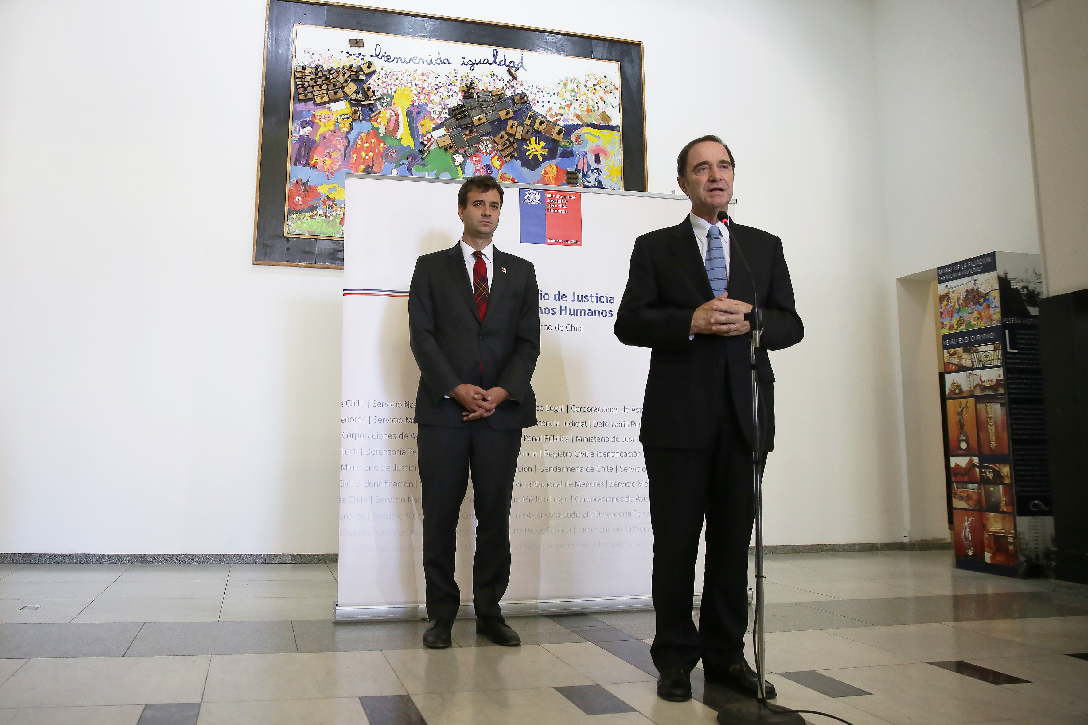 Acompañado del subsecretario de Justicia, Juan José Ossa, el ministro explicó que “hemos conversado con la Contraloría y ya hemos tomado nota de los decretos que están en tramitación, en este minuto en ese organismo de parte de este Ministerio y, por de pronto, hemos paralizado el decreto que se refiere al nombramiento de notario en San Fernando y queremos anunciar que respecto de ese caso vamos a abrir un nuevo concurso, lo vamos a declarar desierto y vamos a proceder desde cero”.