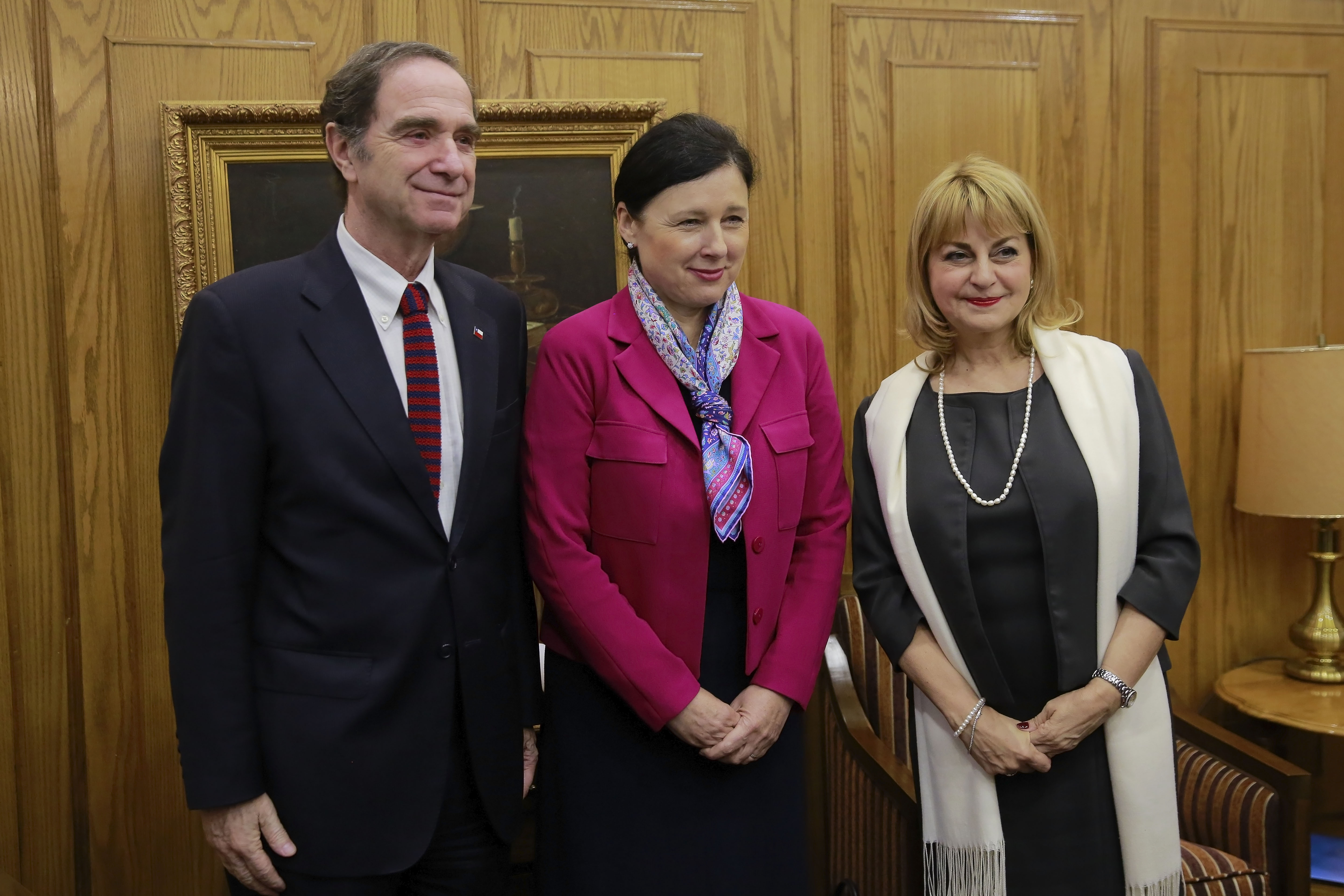 El Ministro de Justicia y Derechos Humanos, Hernán Larraín Fernández, representantes del Ministerio de Hacienda y la Comisaria de Justicia, Consumidores e Igualdad de Género de la Comisión Europea, Vera Jourová, se reunieron este lunes 8 de julio, para intercambiar opiniones sobre formas de fortalecer aún más la cooperación entre la Unión Europea y Chile en el área de protección y flujo transfronterizo de datos.