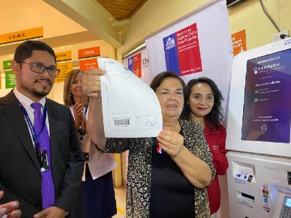 Fue la noticia que dieron a conocer esta mañana la Seremi de Justicia y Derechos Humanos de Ñuble Jacqueline Guiñez Núñez, junto al Director Regional (s) del Servicio de Registro Civil e Identificación Hugo Julio Jordán y Directora del Departamento de Salud de la I. Municipalidad de Chillán Ximena Meyer, al presentar a la comunidad el tótem de autoatención del Registro Civil ubicado en el Cesfam Los Volcanes para facilitar a los usuarios la obtención de 17 tipos de certificados de este servicio, gratuitos obtenidos en línea.