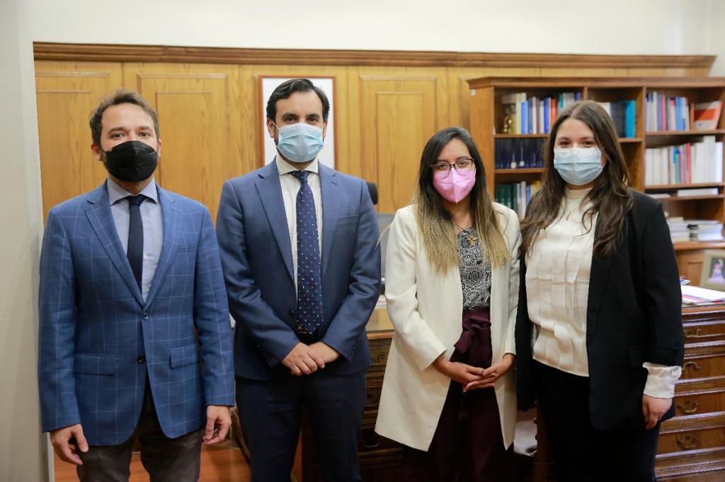 Foto: Subsecretario Jaime Gajardo junto al jefe de la División Judicial, Pablo Fuenzalida, y directivos de la Clínica Jurídica de Migrantes y Refugiados de la Universidad Diego Portales.